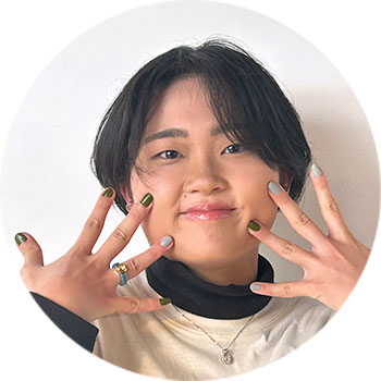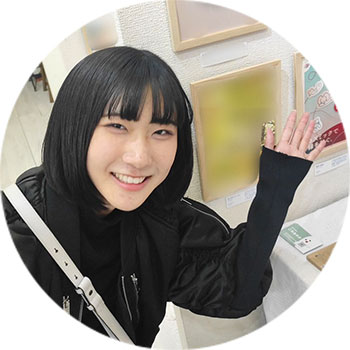 小学生の頃にかなかなファクトリーで絵画や造形の楽しさを知り、大阪府立工芸高校ではビジュアルデザイン科でポスターやパッケージ等のデザインを学ぶ。成安造形大学に特待生で進学し、デザイナーを目指す大学生。
