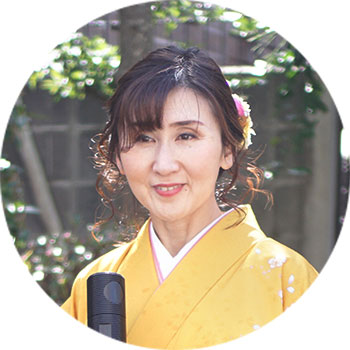 2014年かなかなファクトリー書道部入会、山本佳邦子先生に師事。2021年日本習字漢字部六段取得。着付け師。2022年よりバイリンガル幼児園KDI豊中教室アート・書道アシスタント。2024年豊中にて日本習字教室開講。男子2人の母。