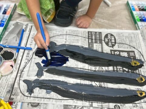 こちらの幼稚園でも秋のモチーフとしてサンマを描きました 本物のサンマにみんな興味津々です クレパスで大きく下絵を描いてから、絵の具を使って色をつけていきます みんなの立派なサンマに 先生も思わず「おいしそう...