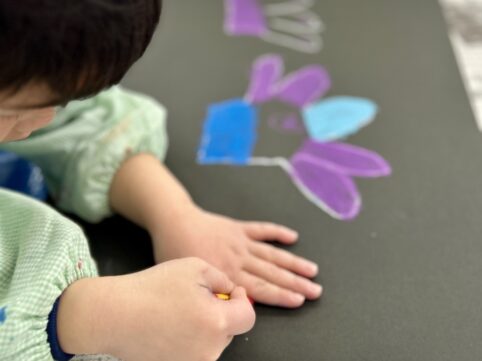 コマで遊びました 毎年1月は、日本の伝統遊びを制作をします 先ずはコマに模様を付けていきます マッキーやポスカを使って、好きな模様を描きます 色んな色で、色んな柄を描きますが、 コマが回るとまた違った色や模様になります ...