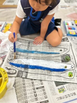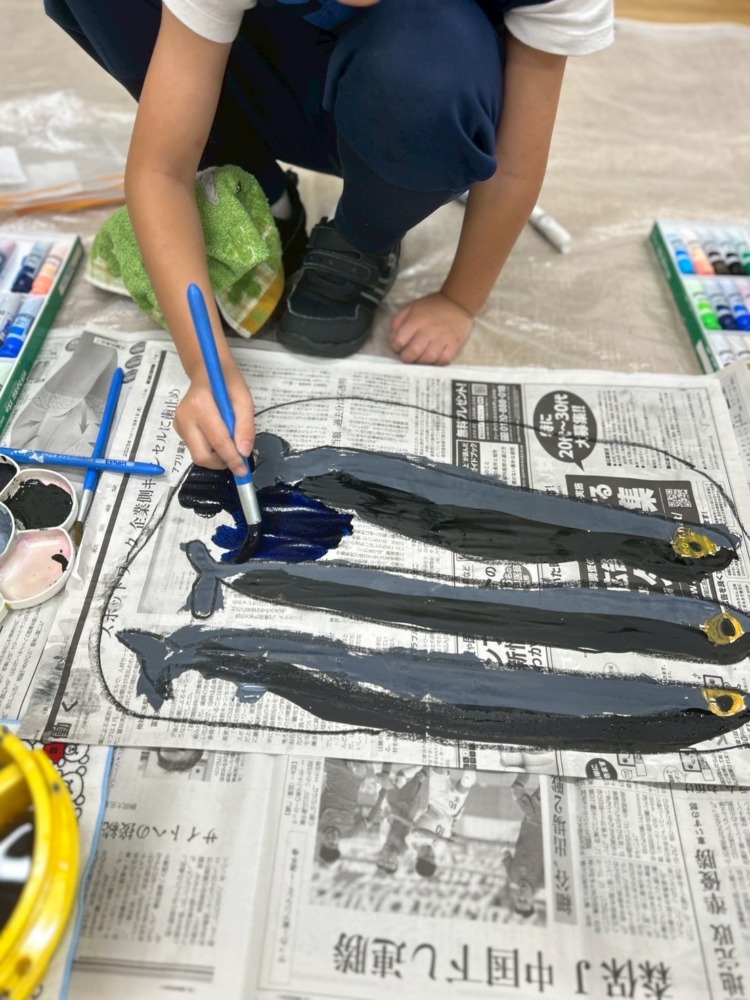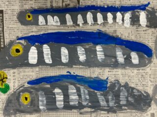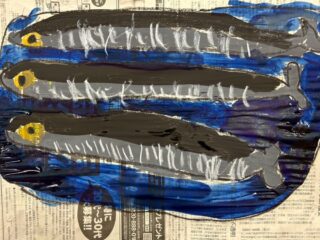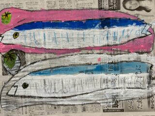 こちらの幼稚園でも秋のモチーフとしてサンマを描きました
