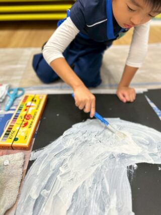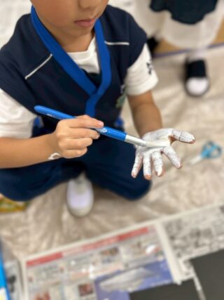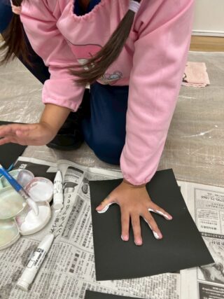 手に絵の具を塗って画用紙にペッタン!