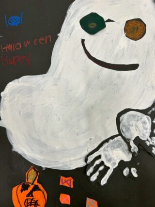 バイリンガル幼稚園でも ハロウィンのオバケを作りました