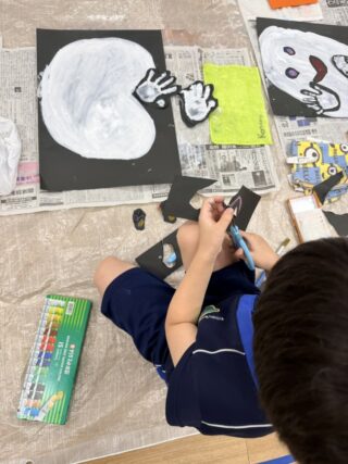 次に、目や口の絵も描いてハサミで切ります
