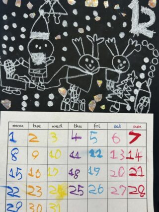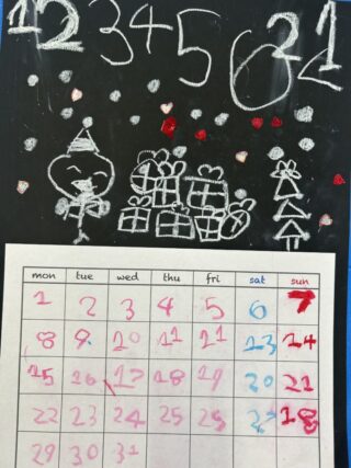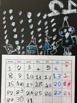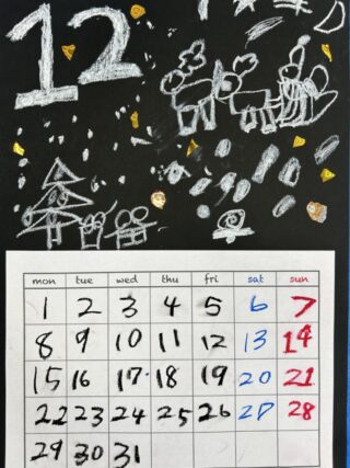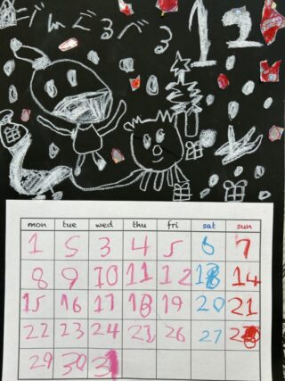 こちらの幼稚園クラスでは、12月のカレンダーを作りました