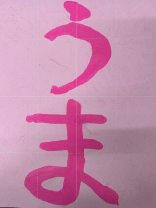 次回、年内最後の書道の日には 墨汁で『うま』と書いてみましょう!