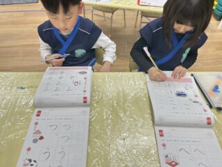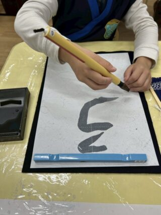 こちらのバイリンガル幼稚園では1ヵ月に一度 『書道の日』があります