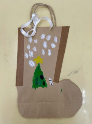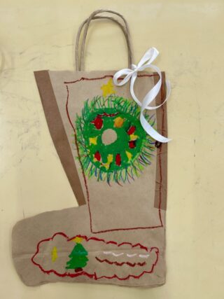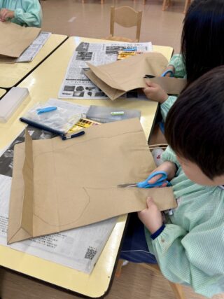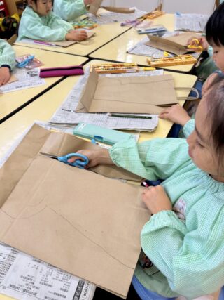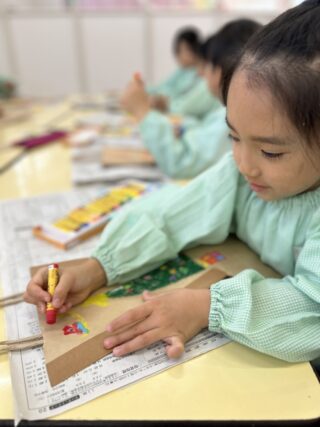 2枚をテープで引っ付けますが、ここは先生にお手伝いしてもらいました