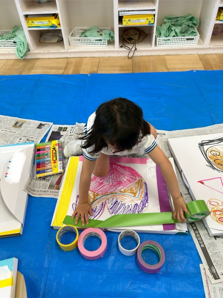 カラーテープを貼って制作です