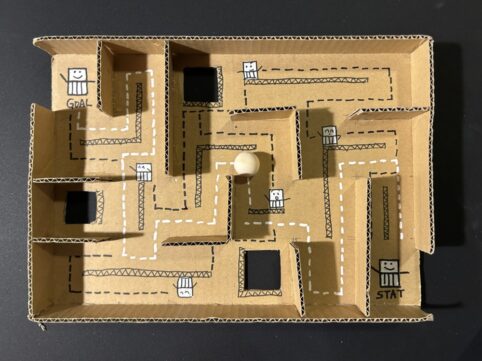 ダンボールを使ってめいろを作りました 最初にダンボール板にマス目を描いておきますその線に沿って壁を立てていきます カッターを使って落とし穴を開けていきます めいろの中にはペンで好きな物語を描いてもらいました 繋げると大き...